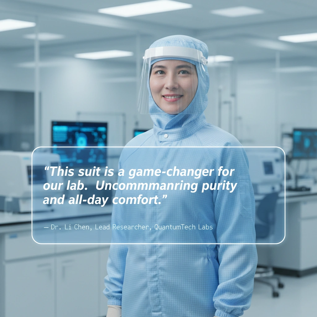 製薬用クリーンルームおよび無菌ゾーン向けに設計されたプレミアム一体型カバーオール - 糸くずの出にくく、 帯電防止性、バリア性が高く、長時間の勤務も快適です。